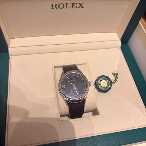 Rolex Turn-O-Graph, reference 6202, en 36 mm rustfrit ste5l unisex automatisk ur fra omkring 1953 med sort gloss signeret urskive, original æske inkluderet, ste5l armb 4e, ingen originale papirer eller garanti, meget god stand med mindre tegninger og skadet urskive. Klik på den blå "gå til varen" knap, for at købe eller byde på denne vare. Den samlede pris vil blive vist inden du afgiver dit bud.