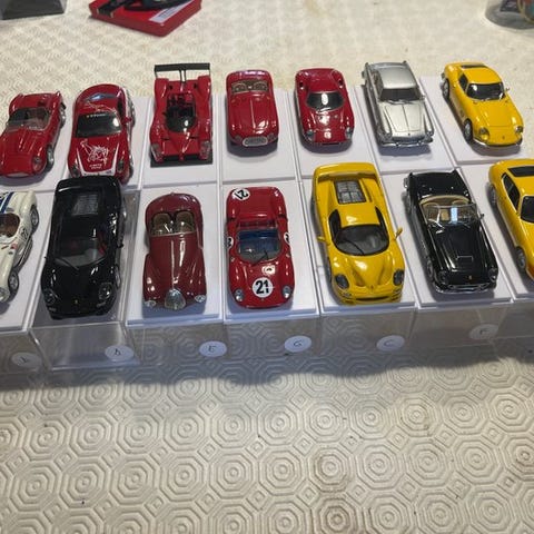 Nr. 12 Ferrari, forskellige epoker, samling fra Altaya De Agostini, med plexiglasboks til udstilling. Ingen støv. Meget god stand. Velegnet for samlere over 14 år.