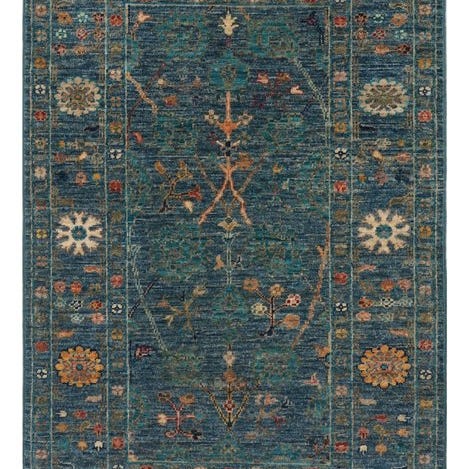 Elegant, håndvævet designer-tæppe i den klassiske Ziegler Farahan-design med særligt udtryksfuldt farvevalg. Den dybblå, let melerede grundtone giver tæppet en elegant og moderne udstråling. De fine, detaljerede florale ornamenter i turkis, guld, beige og diskrete rødlige nuancer sætter stilfulde accenter og giver en harmonisk helhedsvirkning.