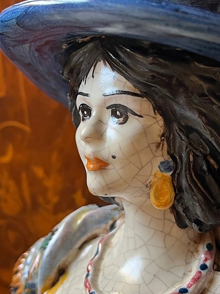 Dekorationen er udført med teknikken nitid incision, som skaber en satinforskydning på det klare krystal. Det primære frise består af elegante voluter og Rocaille-motiver, der løber langs hele kopperens omkreds.