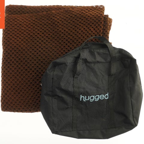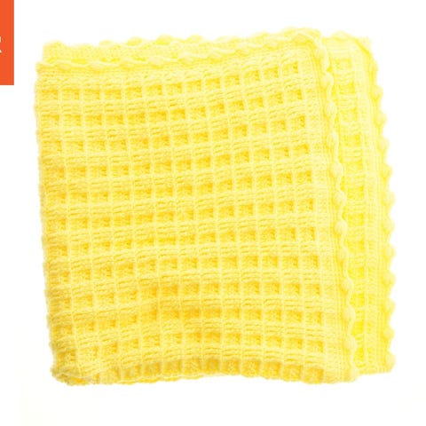 Et blåt tæppe med en tekstureret mønster. Hæklet?