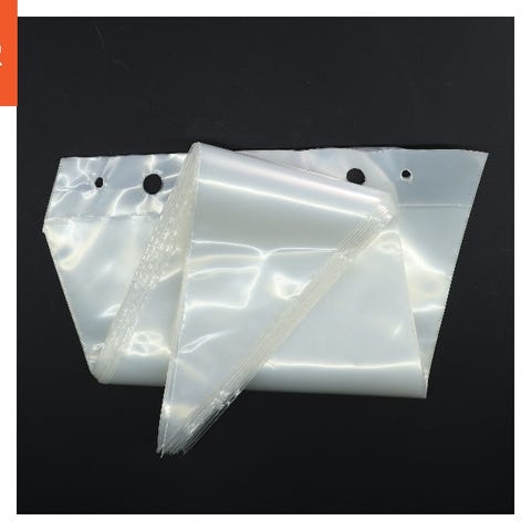Dette er en pakke med 24 sprøjteposer, hver med en størrelse på cirka 55 x 29 cm. Poserne er gennemsigtige og har huller i den ene ende.