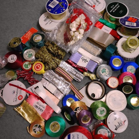Pakke med trækblomst bånd. Indeholder 2 x 10 styk i forskellige farver og mønstre, herunder lilla med stjernemotiv og rosa med blomstermotiv. Båndene er dekorative og ideelle til gaveindpakning eller festpynt. Tags: gavebånd, dekoration, festpynt.
