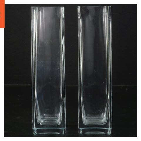 To klare glasvaser med en højde på 15 cm. Vaserne er simple og cylinderformede, hvilket gør dem velegnede til enkle blomsterarrangementer eller som dekorative stykker på hylder eller borde. Klar glasmateriale giver et elegant og tidløst udseende.