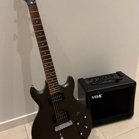 Elektrisk guitar i hvid finish. Modellen har dobbelt cutaway-krop, to humbucker-pickupper, volumen- og tonekontrol samt 3-vejs pickupvælger. Guitaren har bolt-on hals med gribebræt med dot-inlays og 6 stemmeskruer. Velegnet til elguitarspil i forskellige genrer og til både øvning og sammenspil.