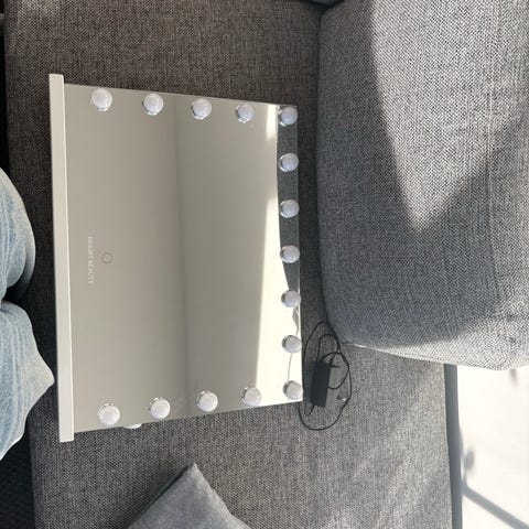 Clevich Mirror with Lighting, 50 x 40 cm, with USB & Type-C, 3 Colour Temperatures, Dimmable, Small Hollywood Mirrors with 10x Magnifying Glass, Table Mirror for Bedroom, Wall Mirror