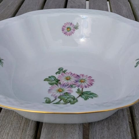 Stor opsats med blomster og guldkant fra Royal Copenhagen - detaljer i annoncen herunder