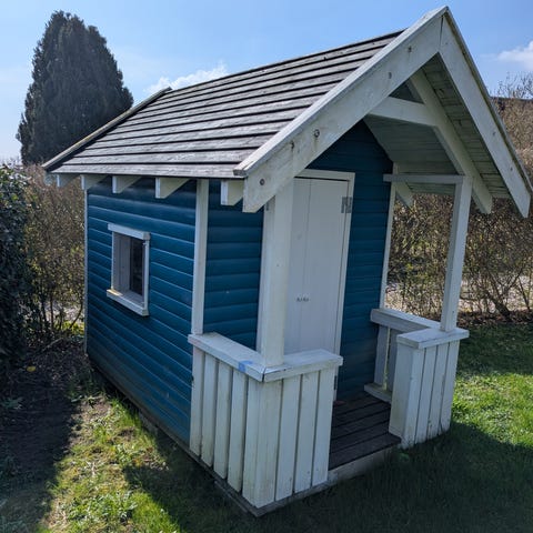 Legehuset er fra ca. 2007, og standen er god med enkelte slidte brædder (se billeder).