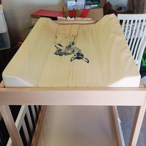 IKEA puslebord med Műsli puslepude