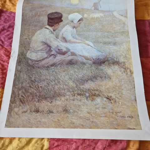 Skønt vintage litografi af Maggi Baaring, 1913-2004, dansk tegner og maler. Både som reklame- og modetegner 1928-33 og som illustrator til aviser, blade og bøger har Maggi Baaring med sin hastige, henkastede streg, suppleret med lyse akvarelfarver, skildret kvindefigurer på grænsen mellem det sensuelle og uskyldige