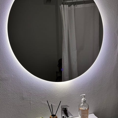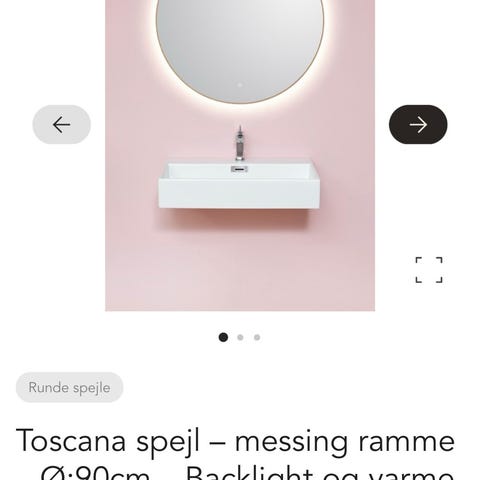 Dansani Moon spejl med integreret LED-lys. Rundt med sort ramme. Diameter ca. 75 cm og dybde ca. 3 cm.
