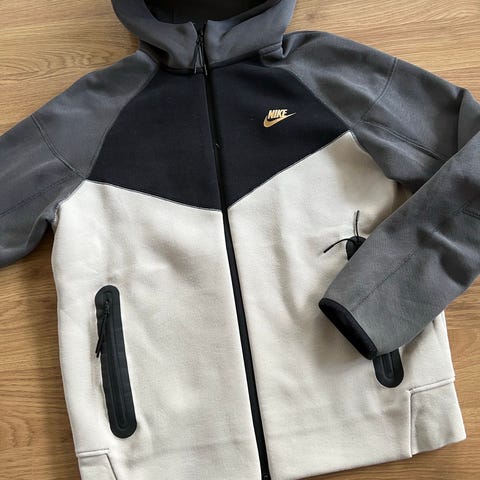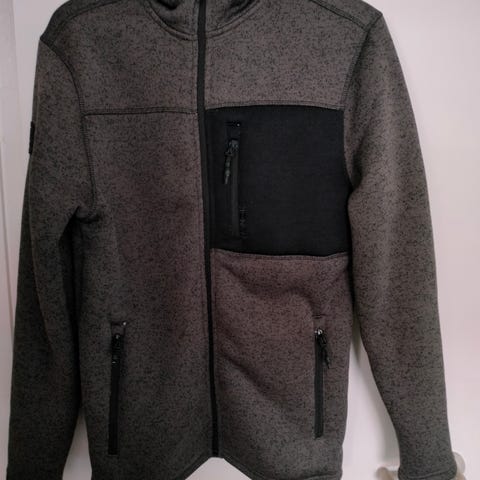 Salomon fleece hættetrøje til herre i størrelse M. Trøjen er grå og fremstillet i fleece-materiale. Den har gennemgående lynlås foran og fast hætte. Ærmet har Salomon-logo påsyet. Velegnet som mellemlag eller let yderlag i køligere vejr.