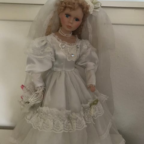 Hånddukke, Perledukken, Gammel Perledukke fra omkring 1950. Kan bevæge hoved og hænder, er i pæn stand efter alder. 33 cm høj.