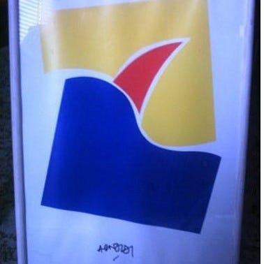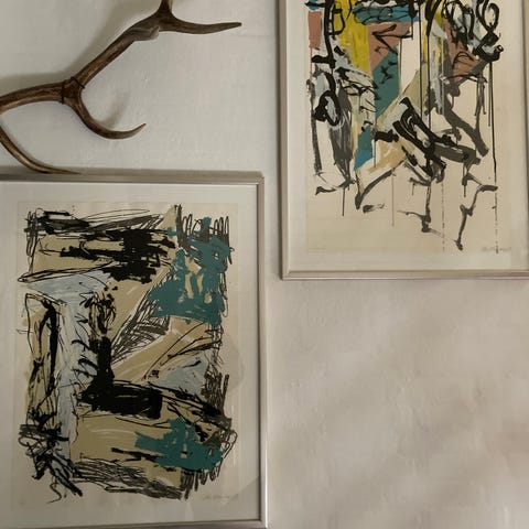 Abstrakt litografi signeret PM 1991 nr 56/320 rammemål 56/72 i fin stand