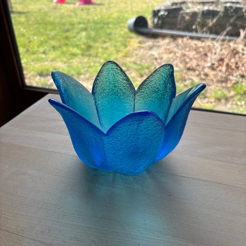 Flot retro glasskål på fod i smuk turkis/blå farve.