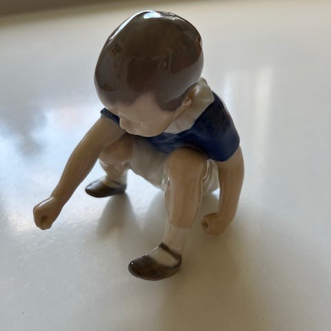 Ukendt mærke porcelænsfigur dreng med fugl flerfarvet