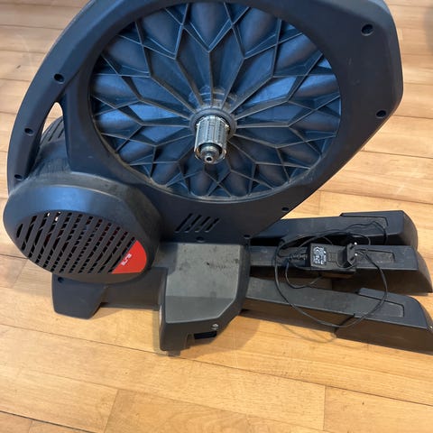 Elite turbomuin hometrainer with 11 speed Shimano casette. Can give you a thru axle adapter if you need it.