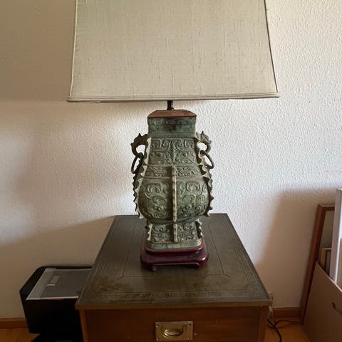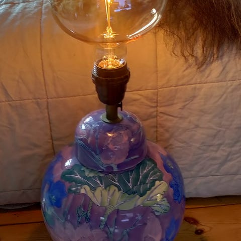 Gulvlampe træ med stofskærm mønstret