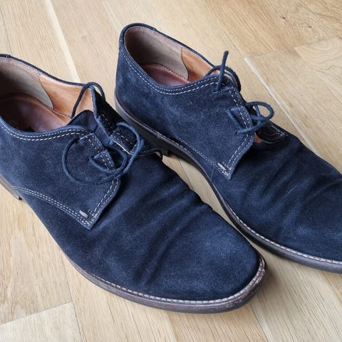 Sælger et par klassiske sorte John White Oxford sko i str. 44. Skoene er i som ny stand — ingen slid, perfekt læder. John White er et britisk kvalitetsmærke grundlagt i 1919, kendt for håndværk og holdbarhed. Cap-toe design, velegnet til både forretning og festbrug. Nypris ca. 1.000-1.200 kr.