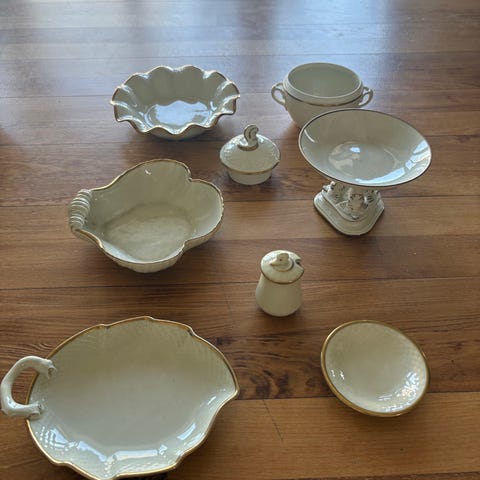 1. Lille bladformet fad.