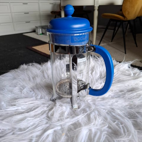 Glaskolbe med aftagelig korkbælte. Låg og filterholder. Pour over.