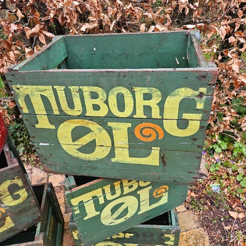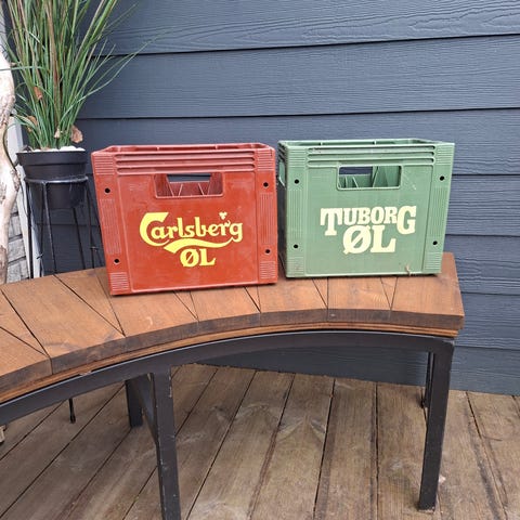 Originale ølkasser fra de danske Spritfabrikker - de har den rigtige patina til at give den stemning som gamle ølkasser giver.