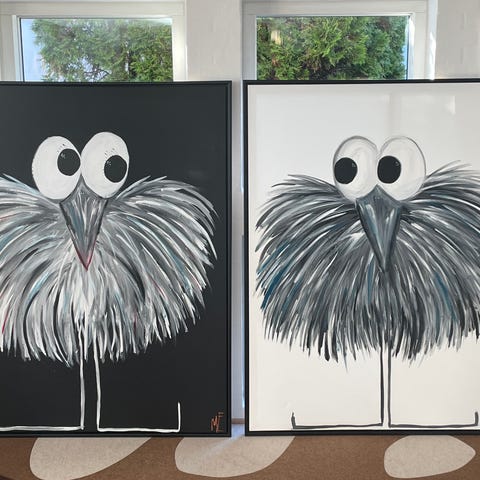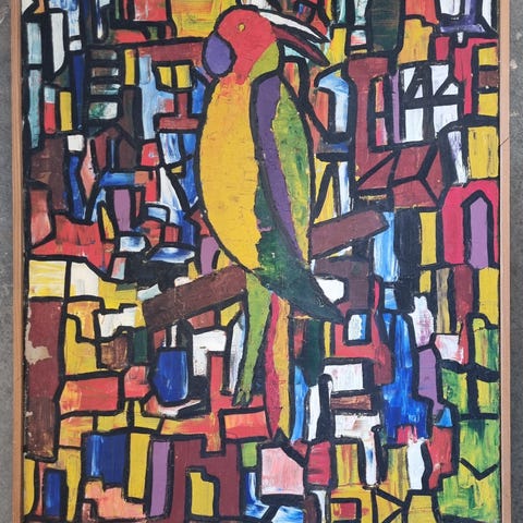 Elena Dorey maleri i god stand. Titel: Fugl Fønix.