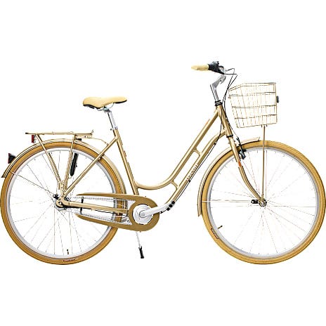 SCO Classic er en cykel med 52 cm aluminiumsstel og 28" hjul, der passer til voksne ryttere. Den champagnefarvede overflade og de medfølgende dele gør cyklen anvendelig til daglig transport og kørsel på asfalt og faste underlag. De 3 indvendige Shimano Nexus-gear gør det enkelt at skifte gear under kørsel. Foran er cyklen udstyret med V-bremse med greb fra Shimano, mens fodbremse sikrer opbremsning bagtil. Cyklen leveres med ringklokke, skærme, støttefod og kurv, så oppakning og parkering kan håndteres praktisk.