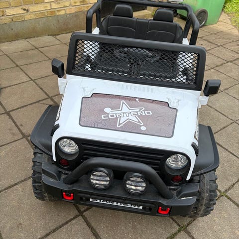Azeno Jeep Offroad Rideon er en robust elbil til børn, der kombinerer realistisk design og underholdende funktioner. Med to kraftige motorer og støddæmpere kan bilen klare både fliser og ujævne underlag i haven. Bilen kan styres manuelt af barnet eller med den medfølgende fjernbetjening, så forældre nemt kan tage kontrollen. Med lys, musik og Bluetooth-tilslutning får barnet en oplevelse, der minder om at køre en rigtig jeep.