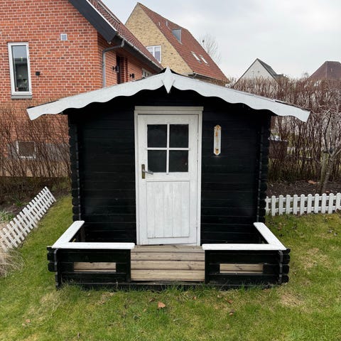 NORDIC PLAY legehus fuldmalet i hvide/røde nuancer i god kvalitet i 10 mm fyrretræ. med skæve døre og vinduer. Døren har magnetlås. inkl. gulv og altankasser. Kommer delsamlet i sektioner, hvilket giver nem og hurtig samling af legehuset. Kan anvendes både indendørs og udendørs, da træbeskyttelsen er vandbaseret.