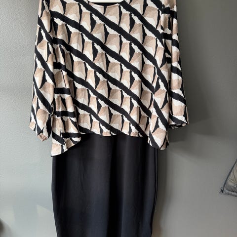 Costa Mani kjole/tunika i størrelse L. Modellen har V-udskæring, trekvartlange ærmer med vidde og dekorativ detalje ved ærmet.