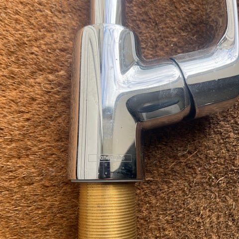 Oras berøringsfri vandhane i krom til batteri. Der er lidt kalk på, men ellers er vandhanen i god stand. Der medfølger en plastiklukker, så man kan blokere sensorerne, hvis man ønsker det.