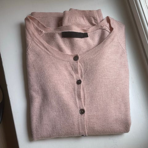 cardigan til kvinder i størrelse M. Cardiganen er lilla beige og fremstillet i et blødt materiale med 52 % modal, 39 % polyamid og 9 % cashmere. Åben model uden lukning med ribstrikkede detaljer foran. Lange ærmer og let, tynd strik, egnet som lag-på-lag over T-shirts, toppe eller kjoler. Velegnet til hverdagsbrug og indendørs brug i overgangsperioder.