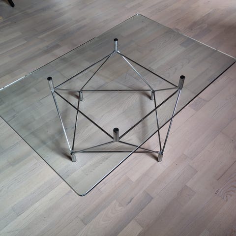 sofabord Spider fra Eilersen bordpladen er udskiftet med en ny panserglas bordplade (Ø90)