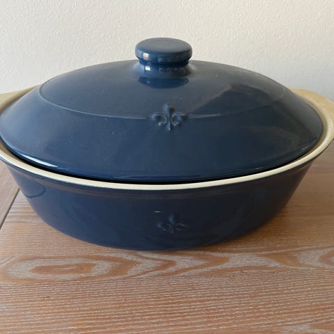 Låg gryde i keramik med glat overflade og dyb blå farve, ideel til bagning og servering af varme retter.- Bemærk at mail, chat og beskeder ikke besvares, og varen skal købes på knappen "Gå til varen". Efter reservering af varen har du 10 dage til at afhente den i den butik, varen er på lager i.