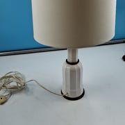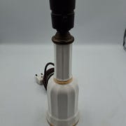 Hvid keramisk lampe med detaljer i messing. Enkel, rund form med en klassisk stil, der skaber hyggelig belysning i ethvert rum.