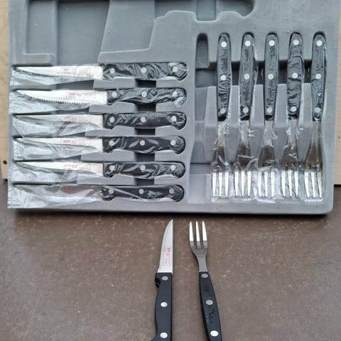 To flotte sæt steak sæt i kasse- Bemærk at mail, chat og beskeder ikke besvares, og varen skal købes på knappen "Gå til varen". Efter reservering af varen har du 10 dage til at afhente den i den butik, varen er på lager i.