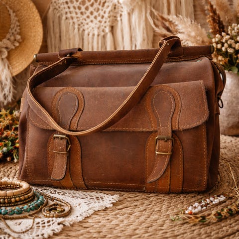 Superlækker kernelæder taske i kraftig kvalitet. Kraftige syninger og smuk farve. Mindre lomme med simpel lukkeklap foran.