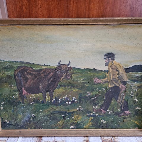 oliemaleri maleri landskab hjort jagtmotiv klassisk kunst retro maleri vintage billede stor vægkunst signeret maleri naturmotiv skovmotiv hjorte billede dekorativ kunst