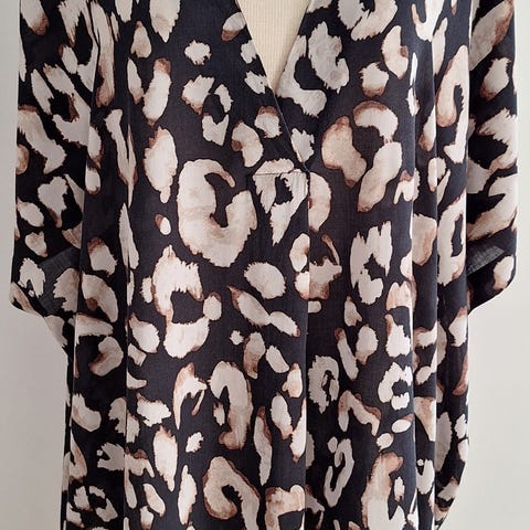 H&M hverdagskjole i str. XL. Kjolen er fremstillet i lyocell og har et multifarvet mønster med dyreprint på mørk bund. Velegnet som hverdagskjole til kvinder . Jeg kan sende