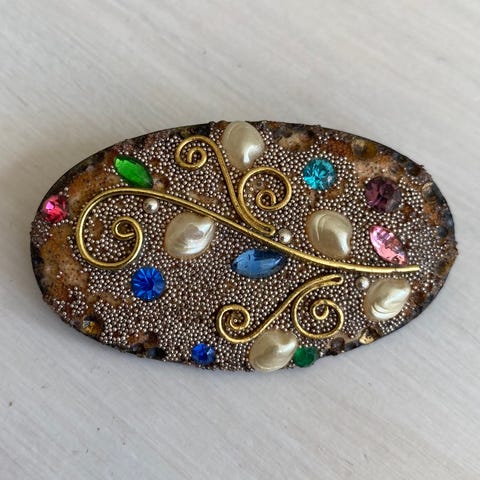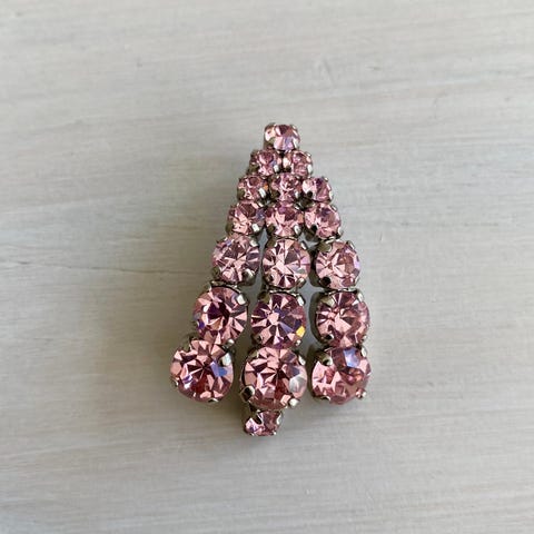 Vintage tredimensionel "stjerne" broche med gule/lysegrønne krystaller og sølvfarvet metal finish.