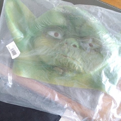 Ansigtsmaske (nypris 75kr) i stof med citronmønster eller stribet, hvis det vendes om og elastikker.