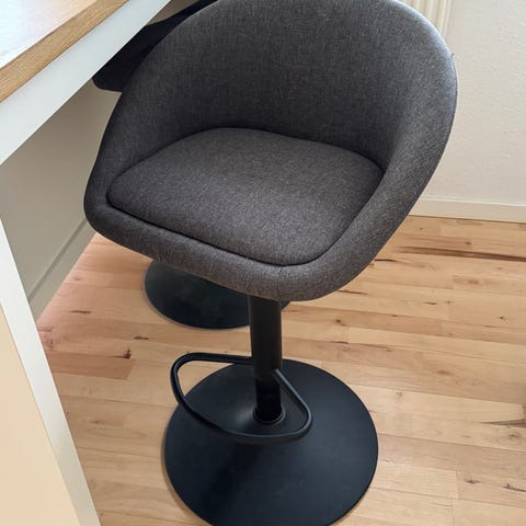 Stolene fremstår i pæn brugt stand med almindelige brugsspor. Velegnede til køkkenø, bar, café eller erhverv.