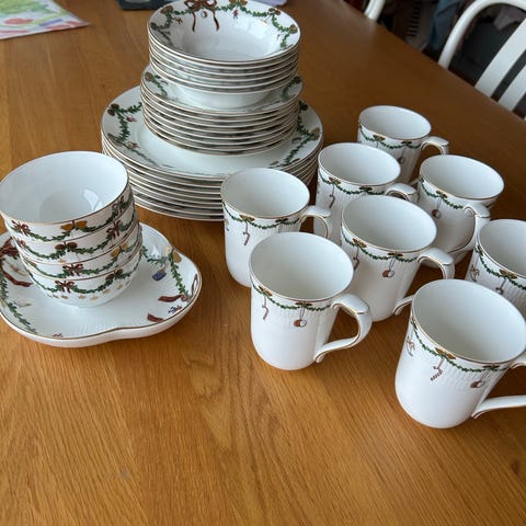 6 stk store kopper incl store underkopper næsten som desserttallerkner med blomsterranker