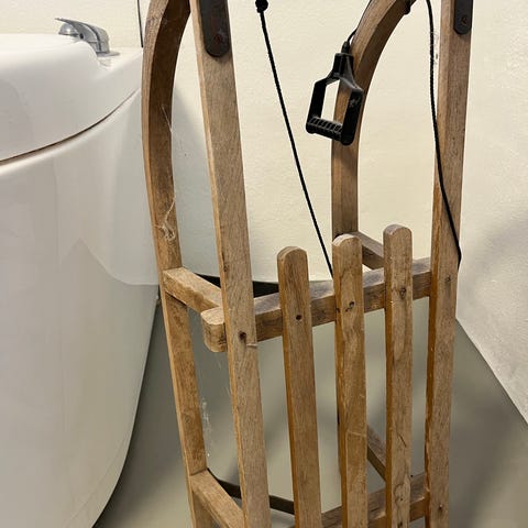 Kælke træ og metal brun gammel oldemor kælk kan bruges også til dekoration