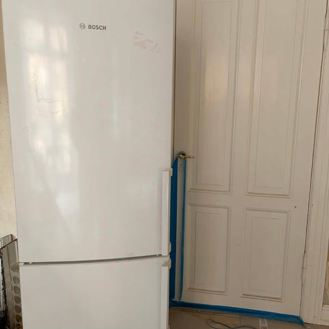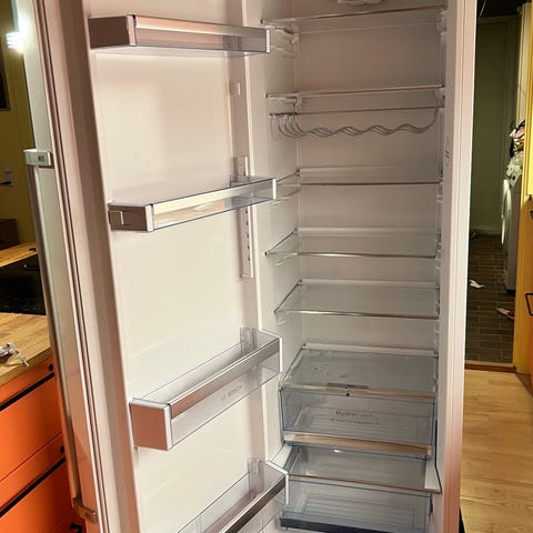 Køleskabet er godt brugt, men fungerer fint. Det stod i huset, da vi flyttede ind, så jeg kender desværre ikke alderen på det.