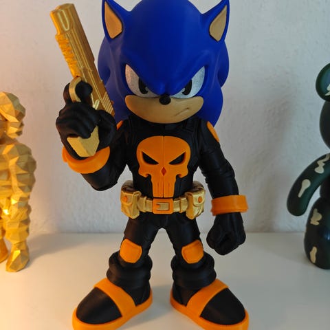 Til figuren følger i alt 3 hoveder, 1 hvid trøje figuren kan have på, 1 stander formet som Batman logoet.