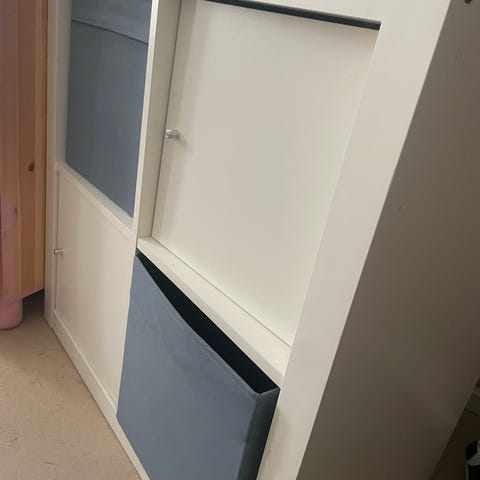 Der medfølger fire skuffer som ikke er på billedet. Den passer til stofkasserne fra ikea også.