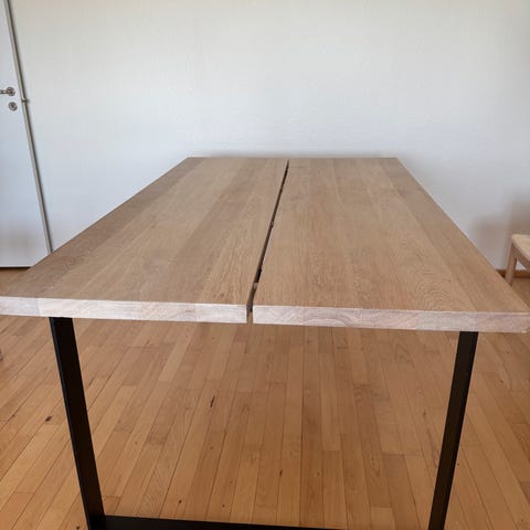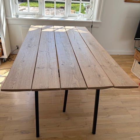 Vi sælger dette spisebord fra Ilva i gråolieret massiv eg. Det er købt i ILVA i 2023 - kvittering haves endnu.
