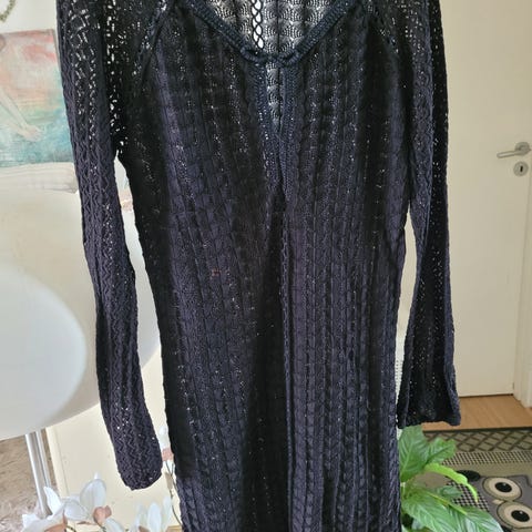 Odd Molly hverdagskjole i sort til kvinder, størrelse L. Kjolen er fremstillet i bomuld og har et strikket mønster med lodrette strukturer, som giver et ribbet udtryk. Modellen har lange ærmer, rund halsudskæring og knaplukning foran ved brystet. Velegnet som hverdagskjole og kan bruges alene eller over leggings eller strømpebukser.